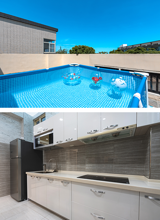 宏悅假期電梯民宿全新落成,寬敞的客廳、自家專屬停車場、麻將桌、廚房(限包棟)、歡唱設備(限包棟)、烤肉場地(限包棟)、泳池(暑期提供) ,並附設電梯讓您輕鬆安置行李。